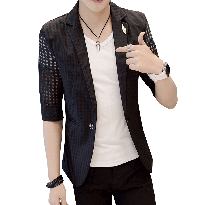 Musim Panas Pertengahan Lengan Versi Korea Tipis Jas Pria Kecil Ini Dari Ramping Dan Tampan Rambut P Shopee Indonesia