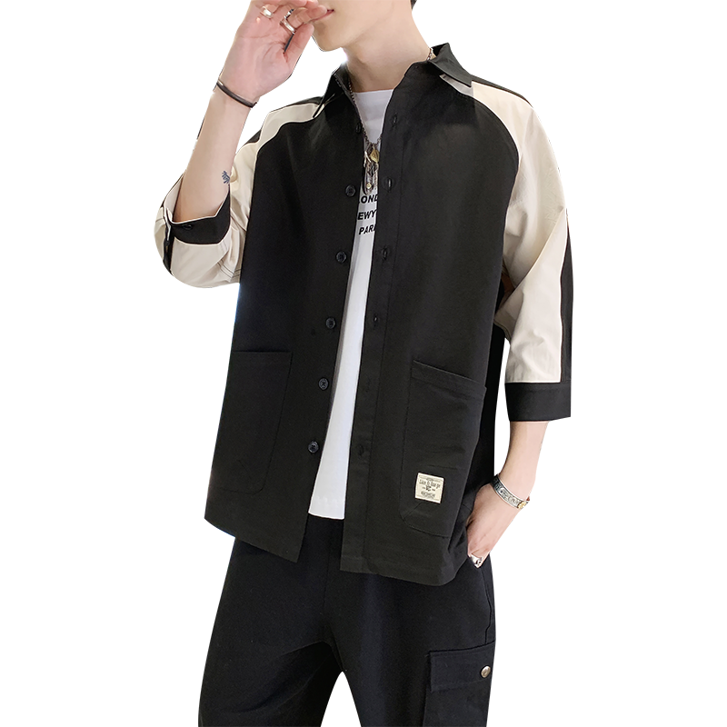 Musim Panas Baru Tren Korea Kemeja Pria Kerah Berdiri Hitam Dan Putih Tujuh Poin Kemeja Lengan Laki Shopee Indonesia