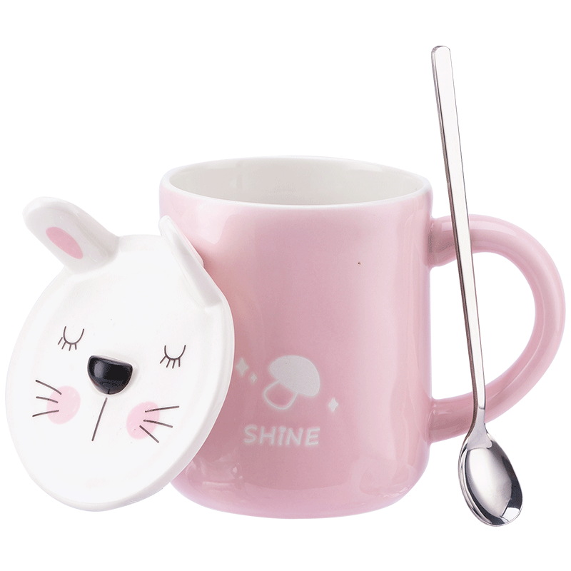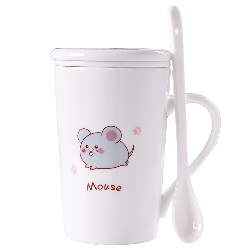 Ceramic Mug Dengan Tutup Sendok Tulang Rumah Tangga Cina Perempuan Kreatif Pagi Secangkir Gelas Su Shopee Indonesia