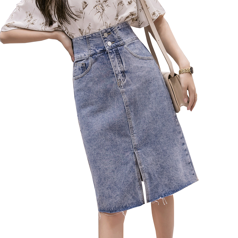 A Line Skirt Pinggang Tinggi Rok Perpecahan Denim Wanita 2020 Musim Semi Versi Korea Baru Tipis Dan Shopee Indonesia