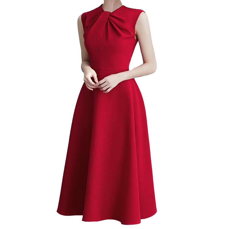 Dress Mini Wanita A Line Swing O Neck Tanpa Lengan Warna Merah Untuk Pesta Pernikahan Shopee Indonesia