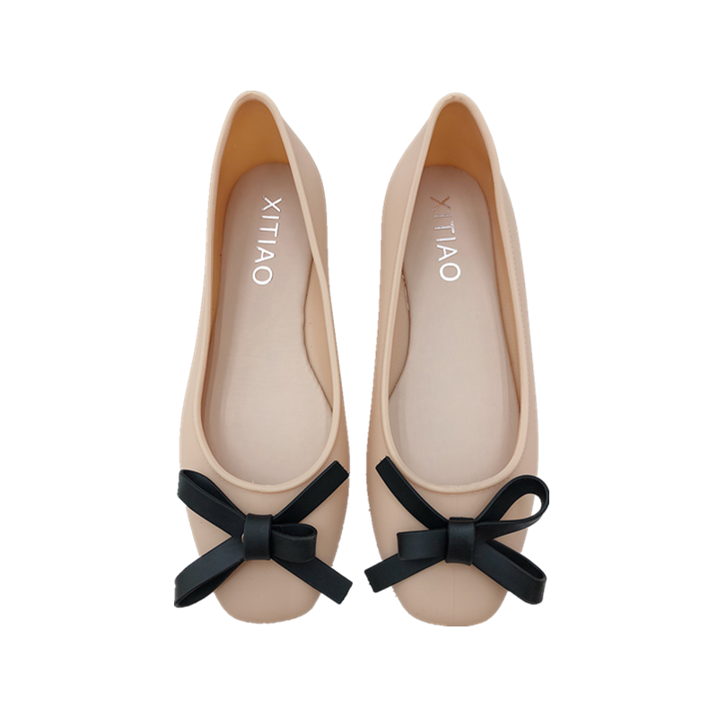 Gentle Fairy Shoes Korean Version Of Cute Soft Girl Small Square Head Bow Shallow Mouth Ballet Flat Shoes Jelly Single Shoes Autumn Shopee Indonesia