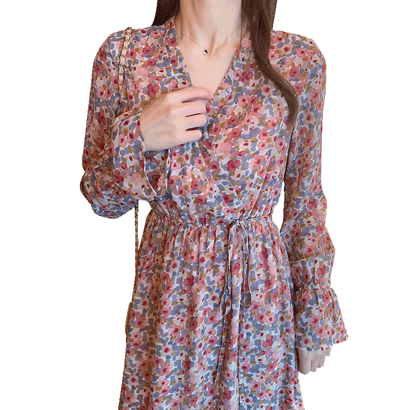2020 Musim Semi Baru Gaun Pergelangan Bunga V Neck Perancis Bellflower Peri Mengandung Gas Dress Len Shopee Indonesia